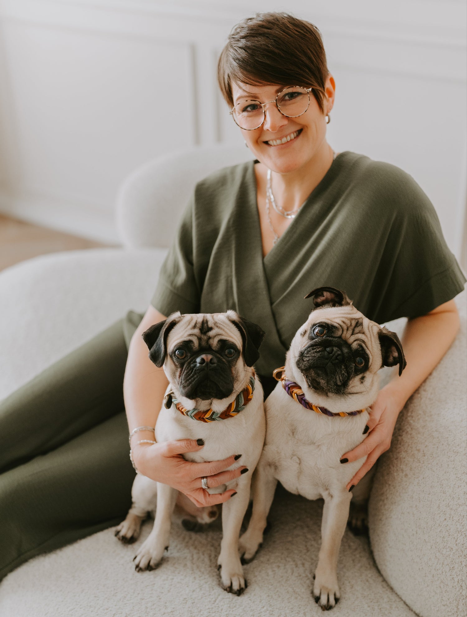 Cathrin und die beiden altdeutschen Möpse Wilma & Kalle.