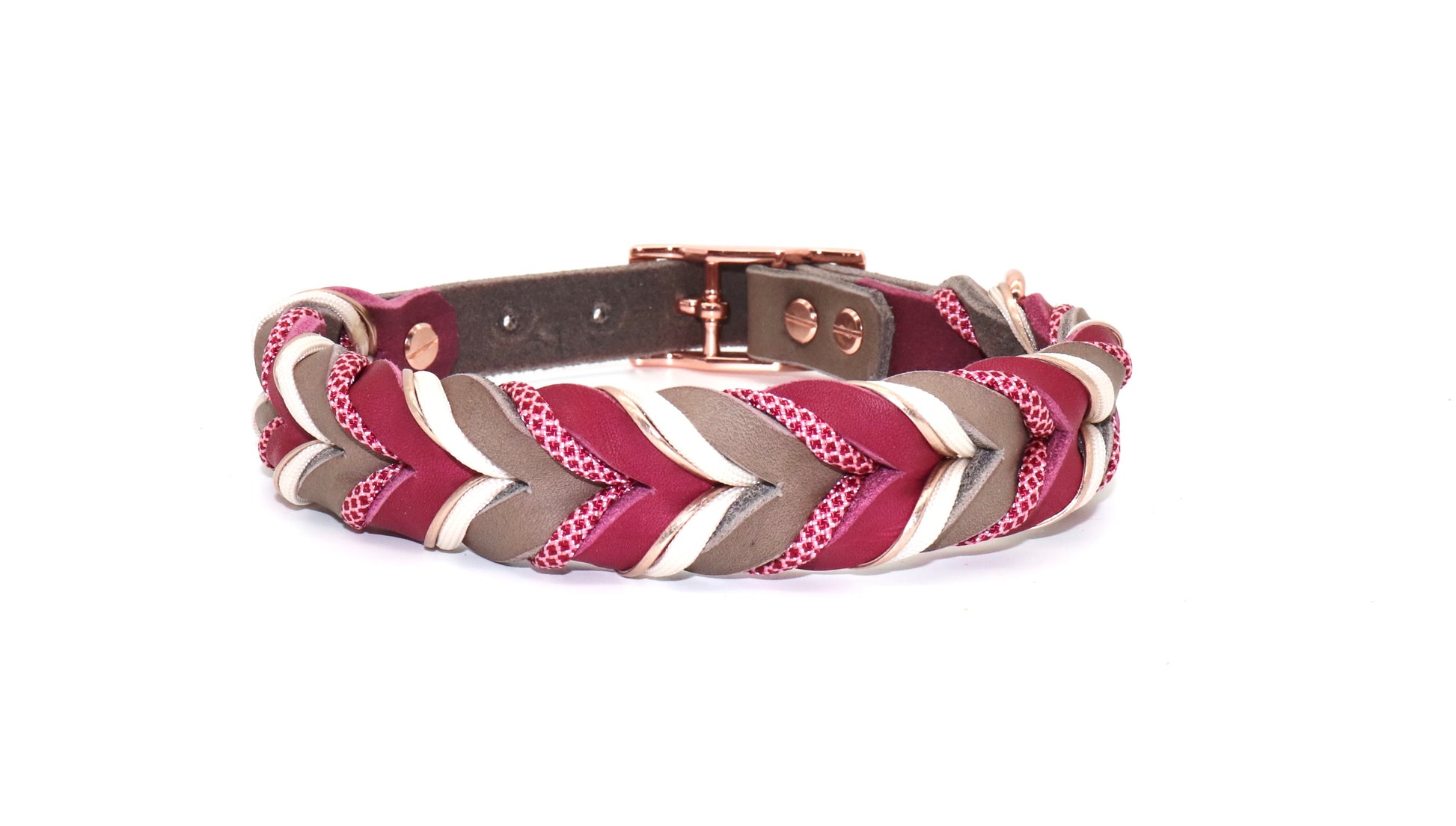 Mit unserem Halsband Modell AMY aus hochwertigem, strapazierfähigem Fettleder in der Trendfarbe Taupe mit Beere hast du ein alltagstaugliches, aber nicht alltägliches Unikat für deinen Liebling!